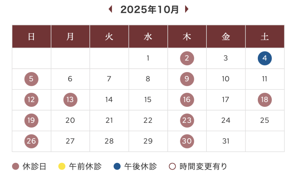 4日(土)は午後休診、18日(土)は休診日といたします。