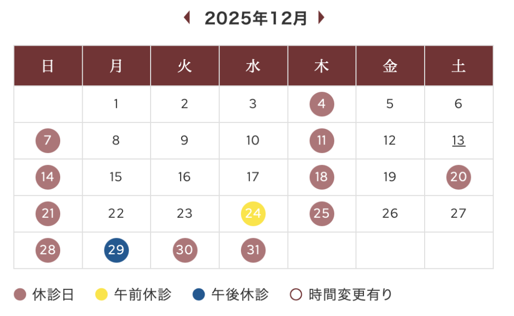 12月は20日(土)は休診、24日(水)は午前中休診(午後は診療)といたします。